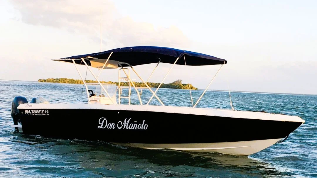 As you can see from the photos each of our boats has some shade, outboard motors, ladder to access the water and are well cared for. None of our boats nor do we know any other Holbox boats that