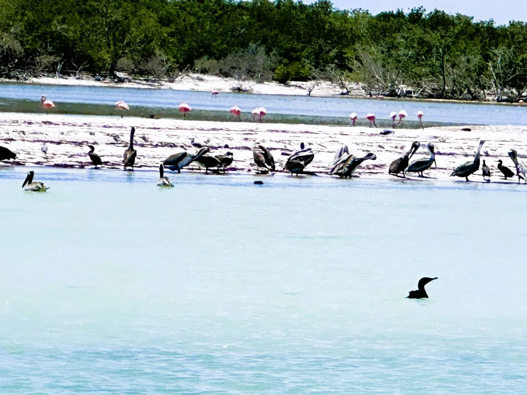 location of the great fish. Then we head to Cabo Catoce for some adventure snorkeling and beaching here and finally return to Isla Holbox. On the return you might see some of the migratory birds such as Pink Flamingos or the brown pelican. Space is limited. Reservations are a must. For the tour we recommend bringing binoculars if you have them to observe the bird life. If you prefer, feel free to bring your own