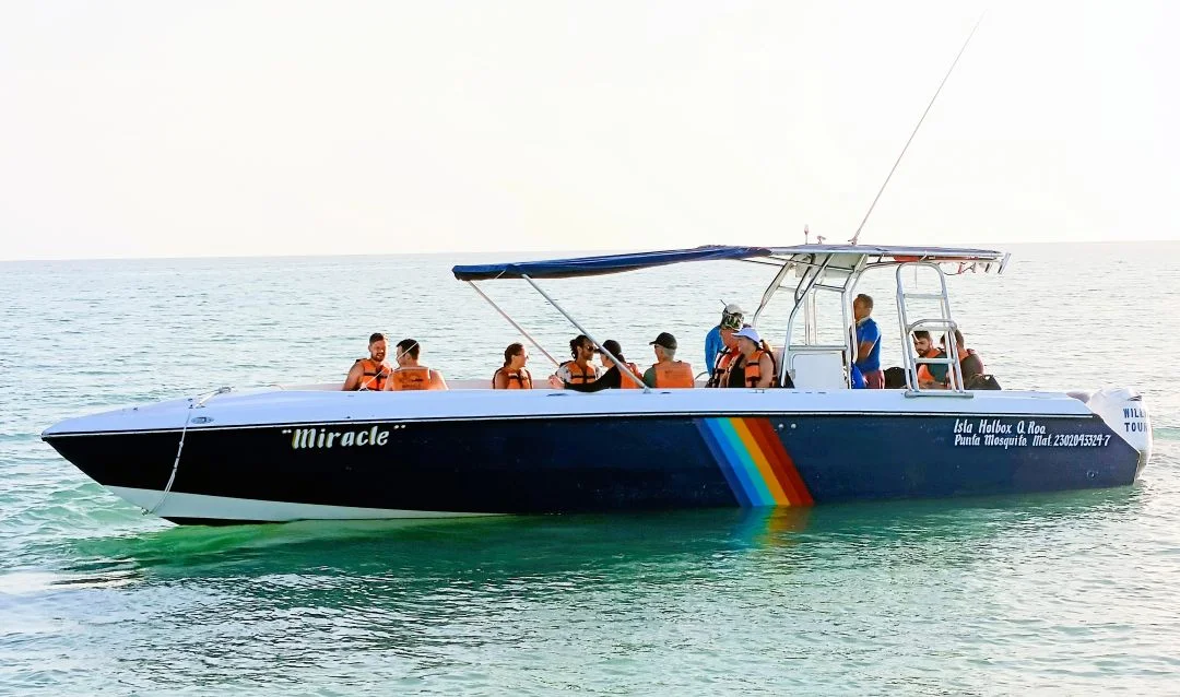 of this incredible experience. Permits allow us a certain number of participants, captain and crew. Willy's tour's is located on Ave Tiburone Ballena otherwise known as Main Street just in front of the store Super Besa, near the town square park and the plaza center. Willy's Tours is a full service tour agency with many years of operation on Isla Holbox and offers the Classic Three island tour (Ojo de Agua, Isla Passion, and Bird Island), rental of golf carts,BioLuninescent tours, and a variety of fishing trips. Just ask us what ever questions you might have!!.